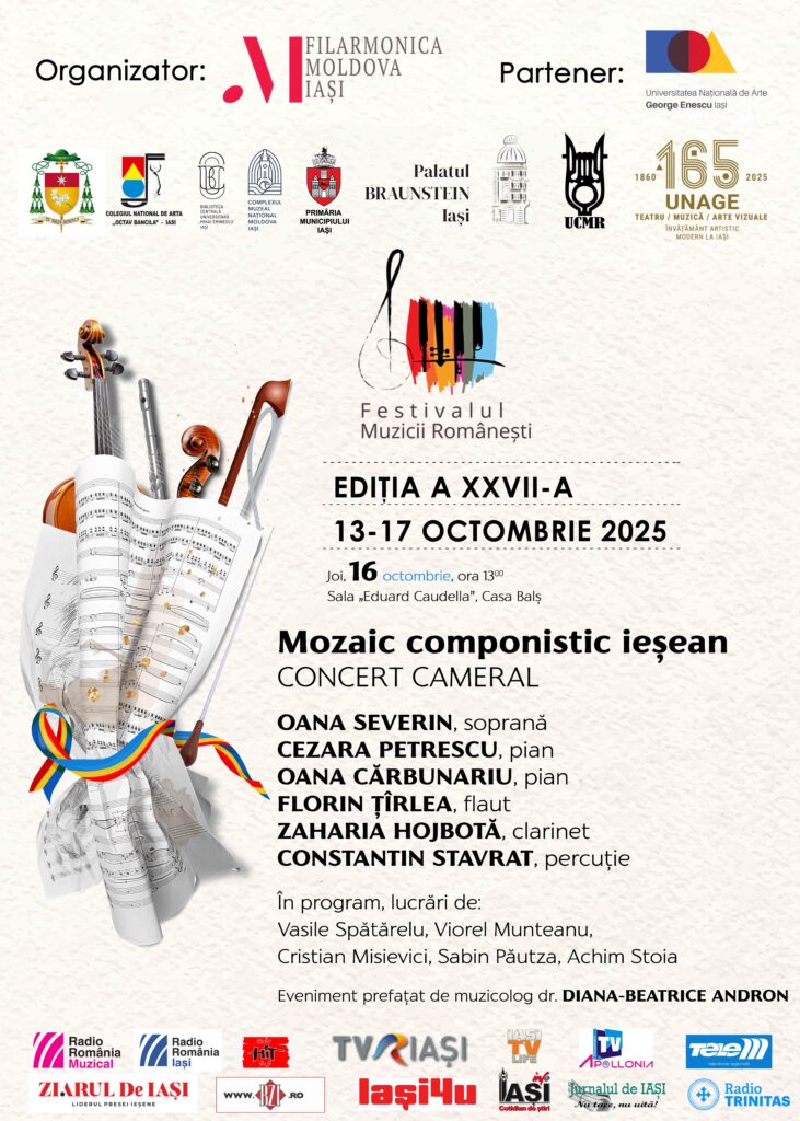 Joi, 16 oct., ora 13 | Sala „E. Caudella”, Casa Balș – Mozaic componistic ieșean | Concert cameral