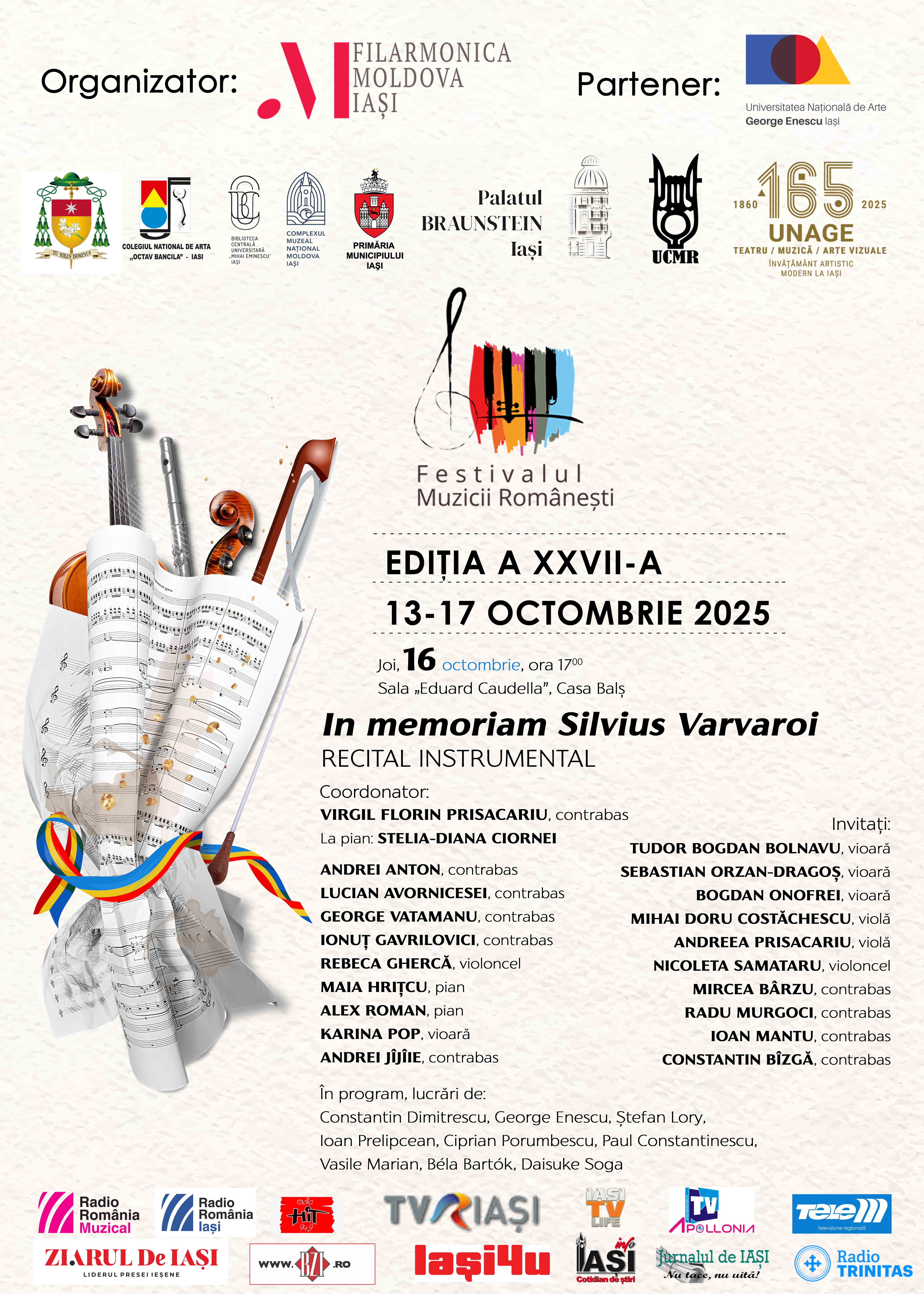 Joi, 16 oct., ora 17 | Sala „E. Caudella”, Casa Balș – In memoriam Silvius Varvaroi | Recital instrumental