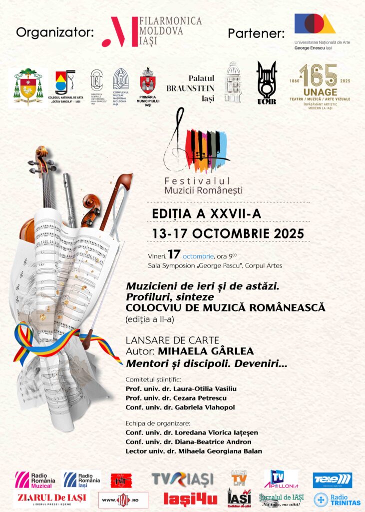 Vineri, 17 oct., ora 9 | Sala Symposion „George Pascu”, Corpul Artes – Muzicieni de ieri și de astăzi. Profiluri, sinteze | Colocviu de muzică românească | Lansare de carte | Mihaela Gârlea – Mentori și discipoli. Deveniri…