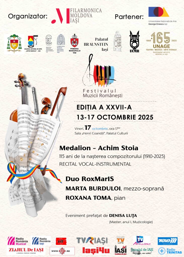 Vineri, 17 oct., ora 17 | Sala „Henri Coandă”, Palatul Culturii – Medalion – Achim Stoia 115 | Recital vocal-instrumental | Duo RoxMarIS